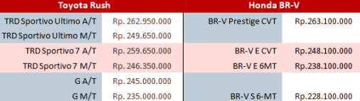 Value for Money yang Tinggi – Dengan segala kelebihan yang kami jelaskan di atas, harga Honda BRV tergolong murah dibanding Toyota Rush, kecuali pada tipe Prestige CVT yang merupakan varian termahal dari BRV. Sehingga kami menilai value for money BRV lebih tinggi dibanding kompetitornya.