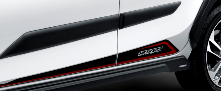 Sticker bertuliskan Heykers pada bagian bawah pintu samping, tepat di atas side skirt.