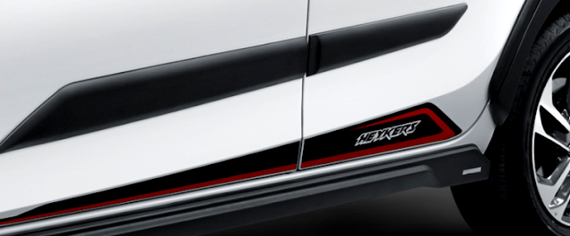 Side Skirt berwarna hitam yang juga merupakan kosmetik wajib bagi mobil bergenre crossover.