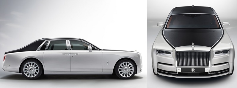 Phantom ini dibekali juga velg 22 inci dan lampu belakang seperti permata. Hal yang masih sama dengan versi sebelumnya adalah model warna eksterior two-tone yang memanjang dari tutup bagasi, atap dan kap mesin hingga yang berhenti grill pada moncong depan. Kedua handle pintu yang berada di tengah body samping mobil, memberi identitas layaknya mobil royal family yang anggun dan super mewah.